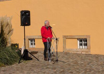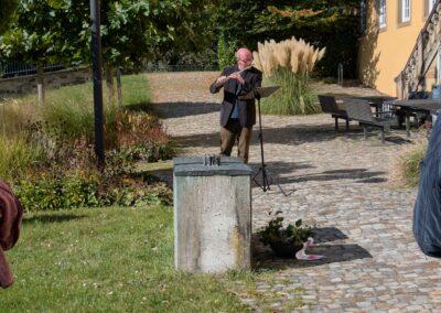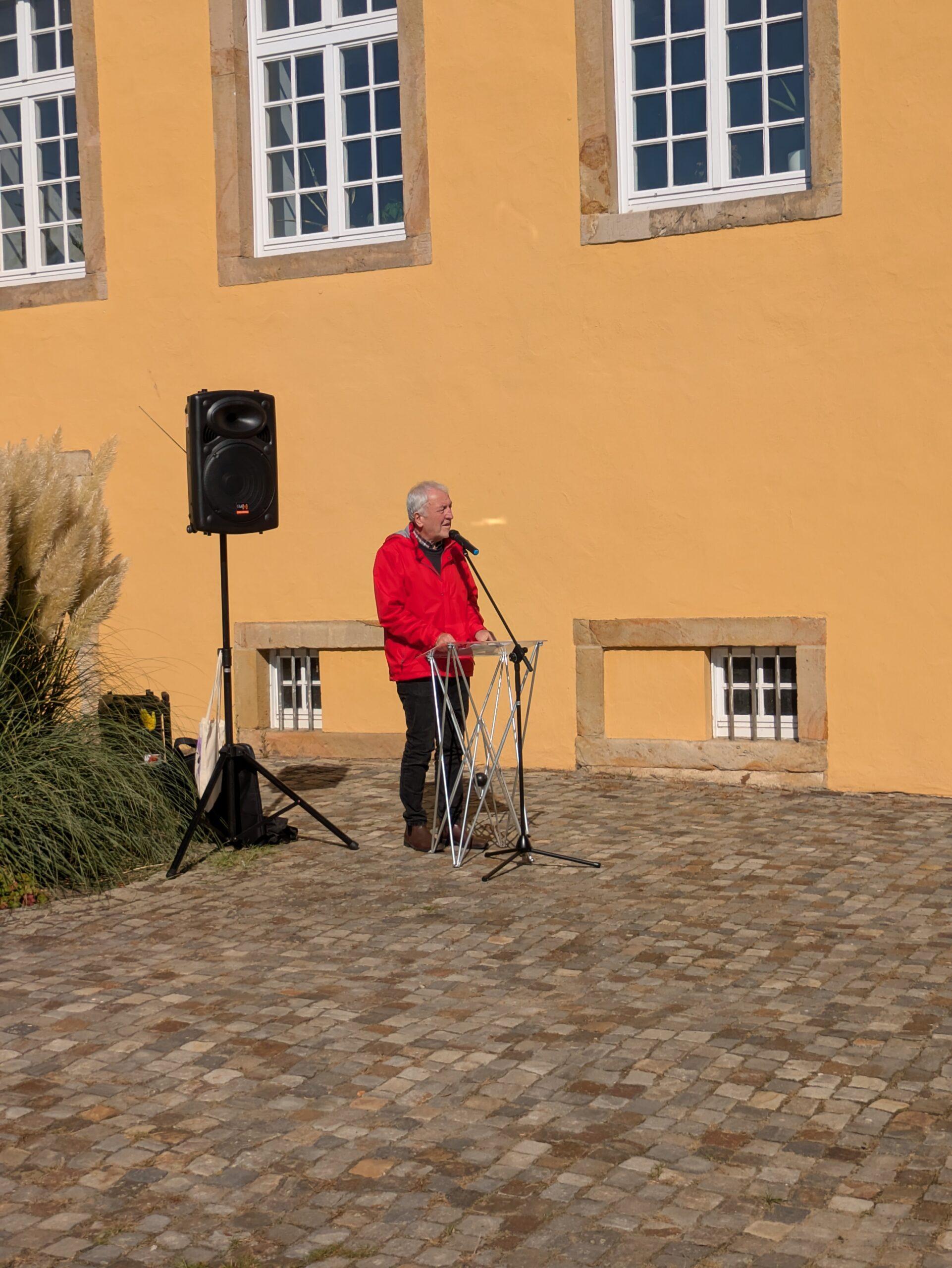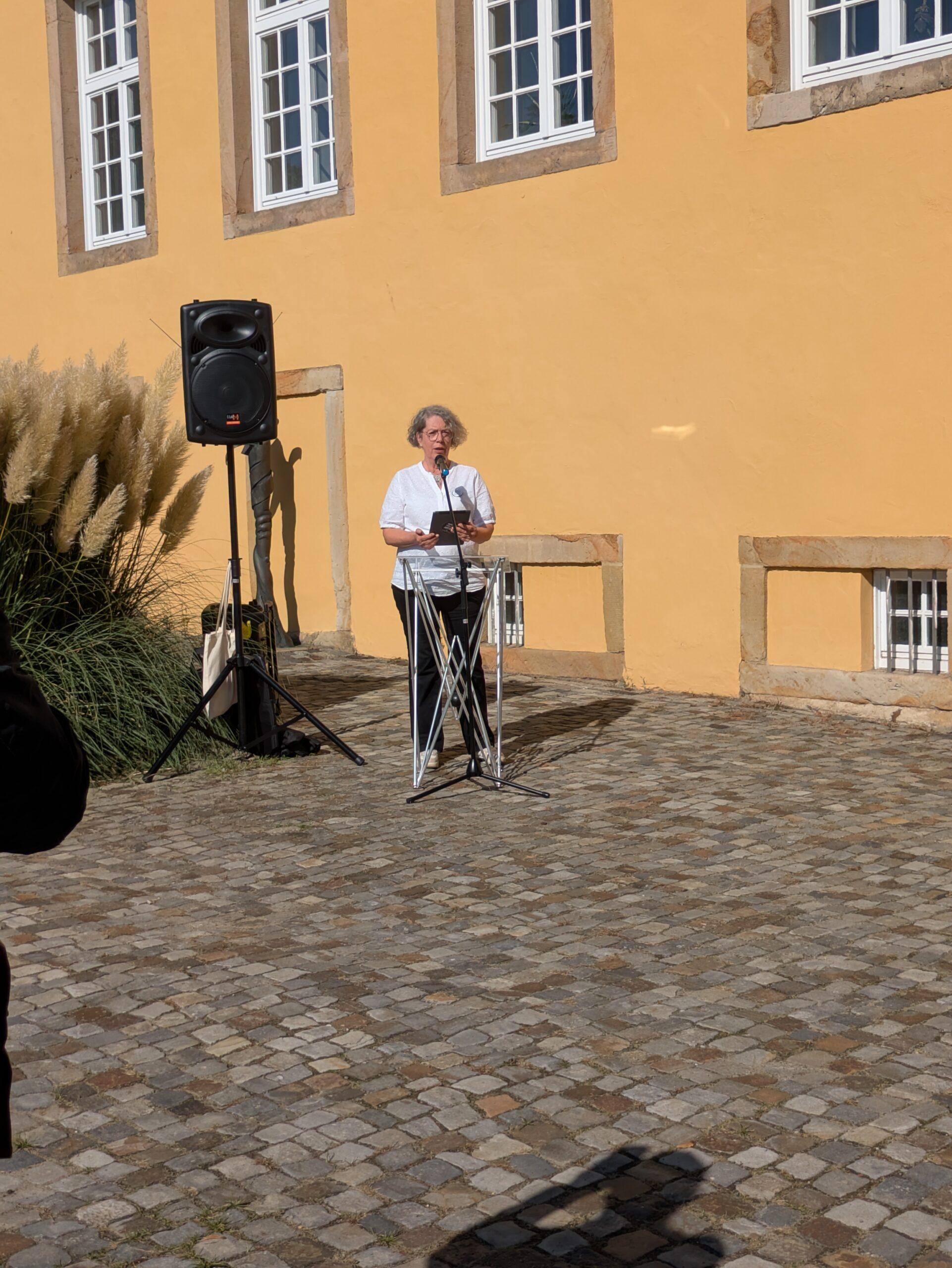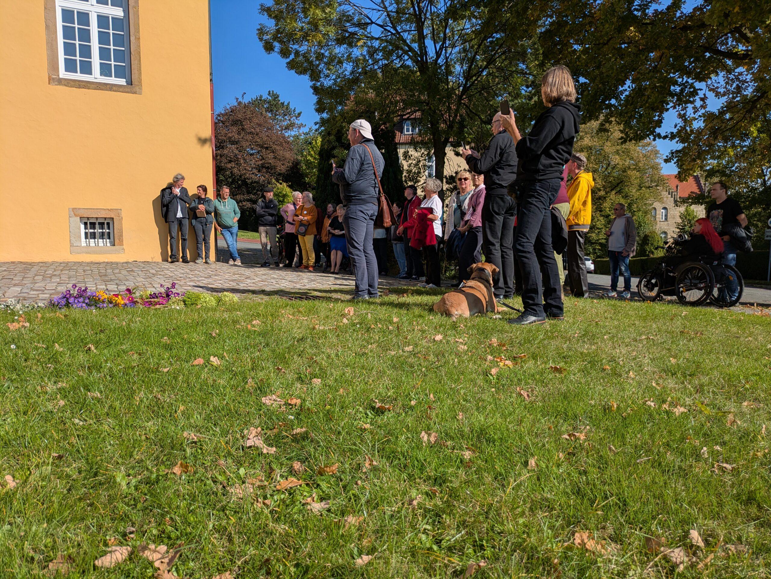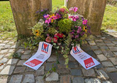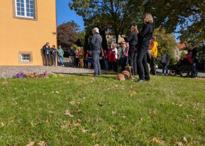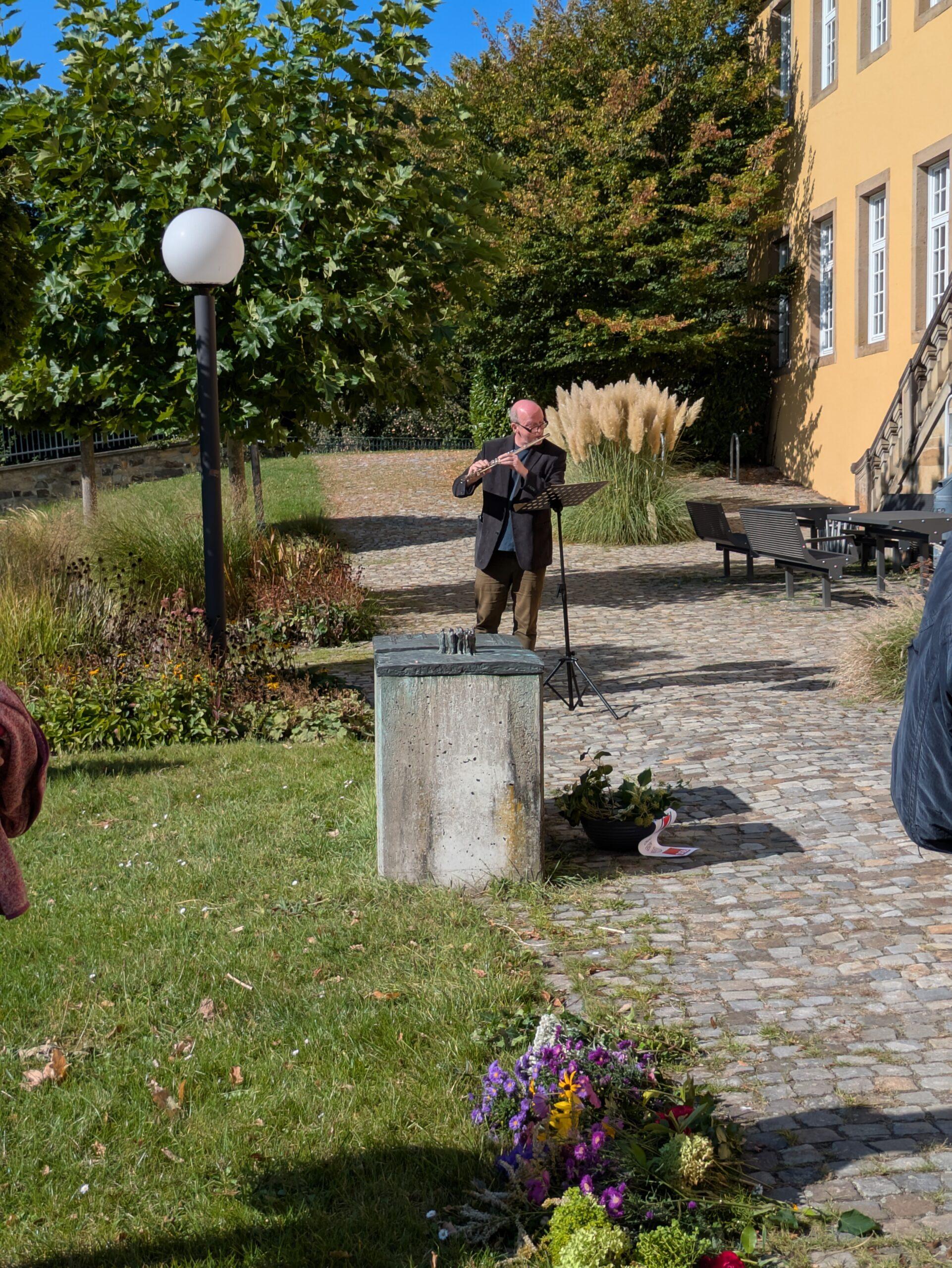Am 28. September erinnerten wir mit einer Gedenkfeier am Mahnmal für die psychisch kranken Opfer des Nationalsozialismus an diese Ermordeten. Gleichzeitig setzten wir ein mahnendes Zeichen. Die Redner:innen gemahnten aktueller politischer Forderungen der Registrierung und Listenführung über psychisch erkrankte Menschen – genau so hatte es 1939 auch angefangen. Auch der Ruf nach Kriegstüchtigkeit wurde vor diesem Hintergrund kritisch eingeordnet: unter anderem an kriegstraumatisierten heimgekehrten Soldaten wurden Elektroschock’therapien‘ getestet, die eher Folter gleich kamen.